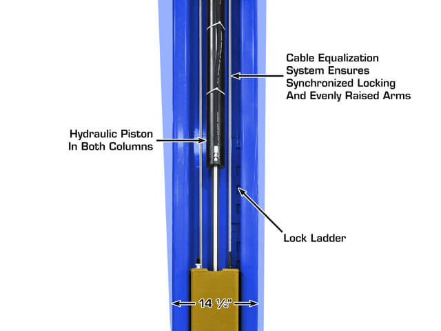 The Atlas® Platinum PVL15 is an ALI CERTIFIED, commercial grade, 15,000 lb. capacity overhead two-post lift designed to accommodate both long wheel base trucks and service trucks. The Platinum PVL15 has an overall height of 174 1/2″ (14′ 6 1/2″), but can be extended by an extra 2 feet to accommodate taller vehicles with the Height Extension Kit.